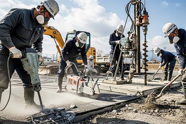 当社は、杭頭処理やコンクリート斫り、斫り仕上げ、毀し工事など多岐にわたる施工を手掛けています。安全かつ高品質な仕上がりを実現します。